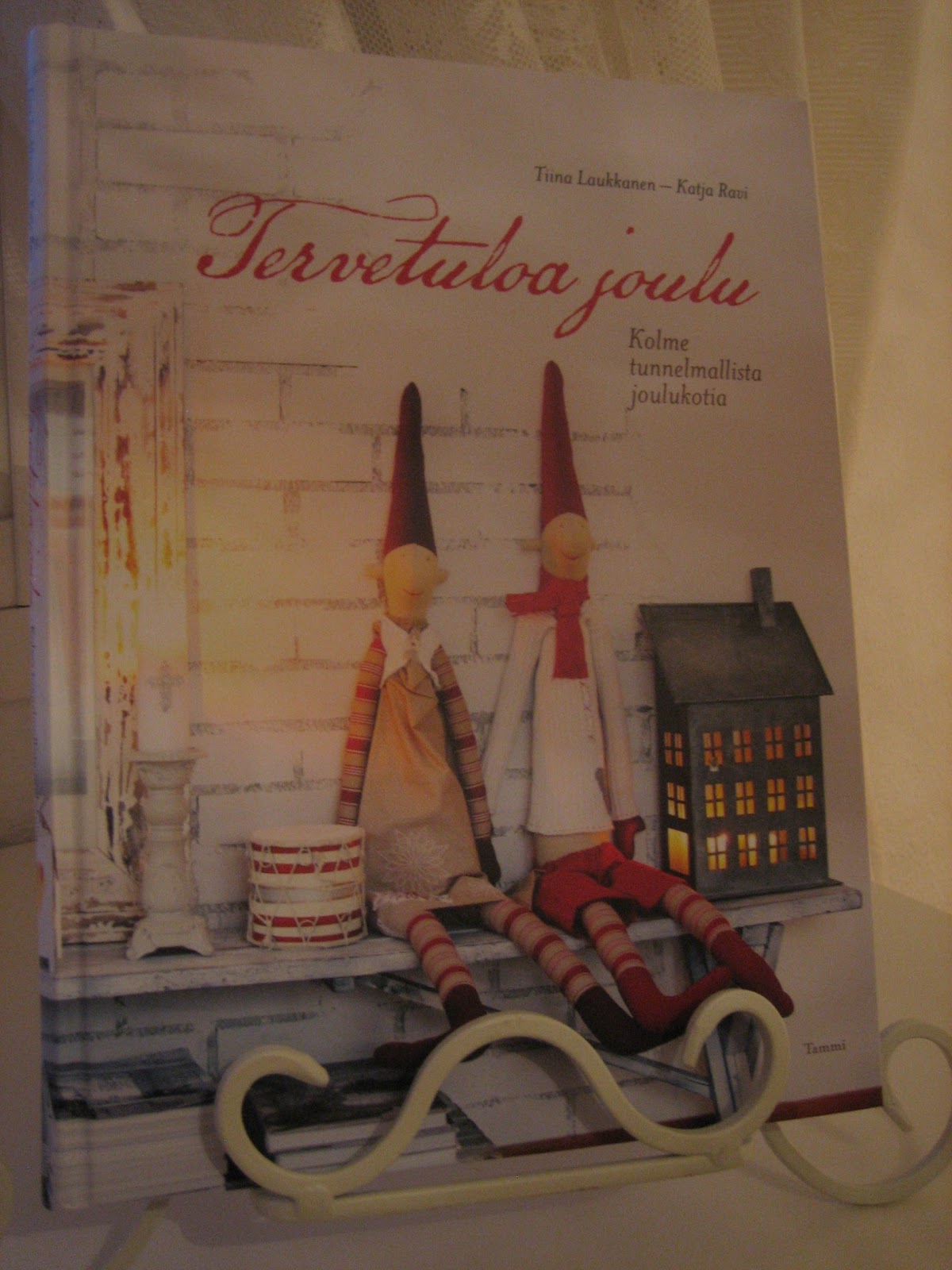 Lokakuun lopulla olin jotenkin kovin väsynyt ja ehkä tympääntynytkin ja pelkkä ajatuskin joulusta puistatti ja aiheutti inhon väristyksiä, pitäisikö todella kohta ryhtyä koristelemaan kotia? Päätin, etten tee tänä vuonna mitään koska ei huvita. Olin jo ihan unohtanut kokonaan tilanneeni Tiinan ja Katjan yhteistyön hedelmän, Tervetuloa Joulu-kirjan, ja kun se viimein tänne putkahti niin jo pelkästään ensimmäisellä selauksella sydämeni pakahtui silkasta riemusta kaikkea kaunista kohtaan ja muistutus siitä miksi sitä kotia on niin ihana laittaa, kun tulee töistä kotiin arjen tympäännyttämänä kaunis koti vastassa lämmittää, tyynnyttää ja tekee oman pienen turvakolon.